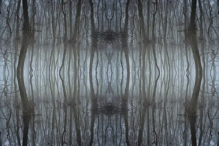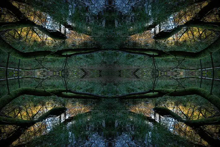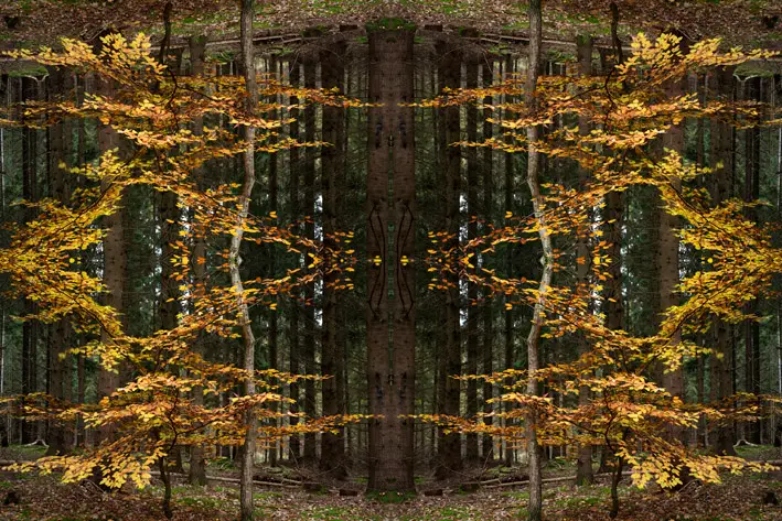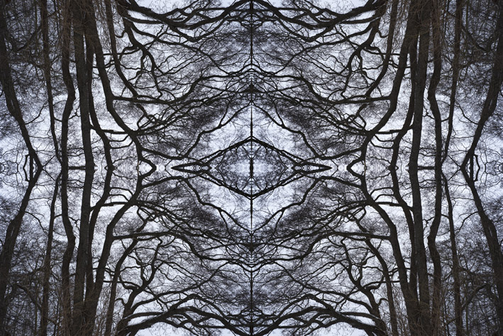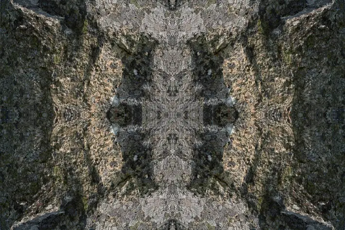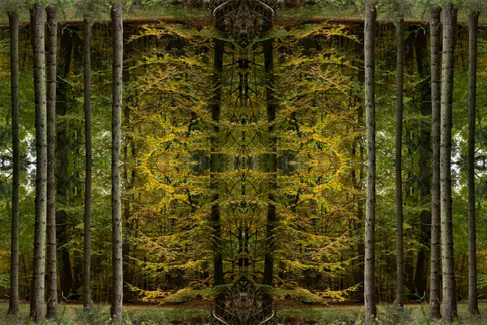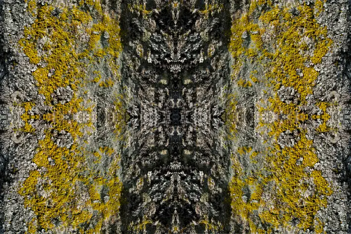 I de collager, der er opbygget af ét eller flere heksagonale udsnit af samme motiv, opstår et interessant samspil mellem den bundne geometriske struktur og den organiske motivverden. Udsnit roteres og komponeres til figurer, der ved gentagelse leder blikket rundt i billedet. Set på afstand danner de enkelte elementer en helhed af vekslende linie- og figursammenhænge. Brudfladerne synlige som i en mosaik.